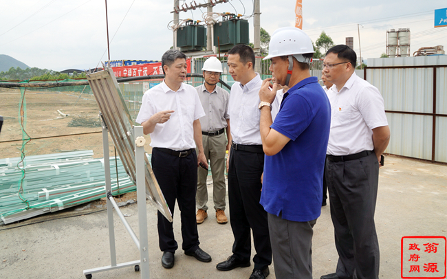 在下午的调研中,陈磊一行来到位于官渡镇的韶能集团翁源生物质发电工程项目建设现场,详细了解项目建设进展情况。陈磊要求项目施工方要把安全生产放在第一位,并严格按照工期要求高标准建设,确保项目如期完工投入使用。