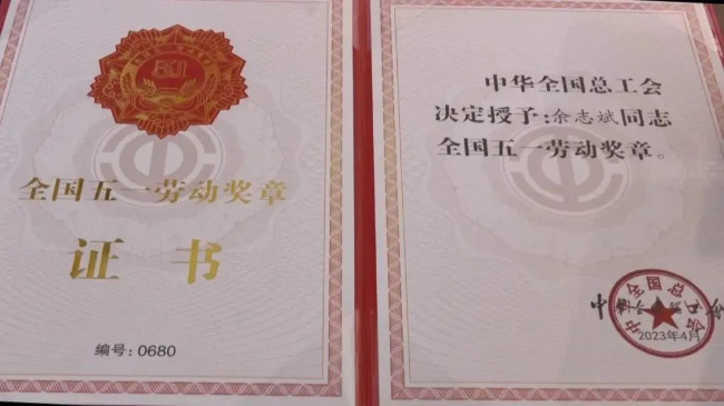 对于今年获得“全国五一劳动奖章”的荣誉,余志斌倍感鼓舞,他表示,将在今后的工作中要更加努力,提高自身综合素质的同时带领班组取得更好的成绩。