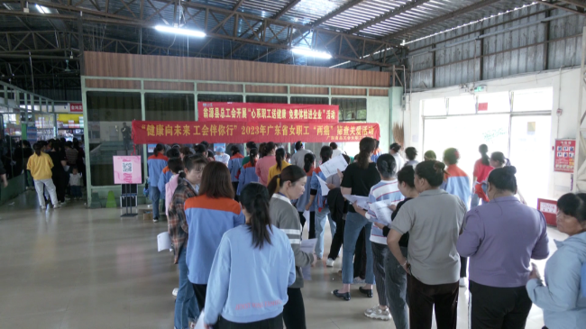 10月8日上午,省总工会女职工委员会到我县开展2023年女职工“两癌”免费筛查关爱活动,为翁源云门家具制造有限公司400多位女职工带来普惠性职工服务。市县总工会有关负责同志出席活动。