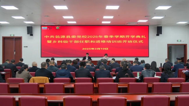 3月10日上午,中共翁源县委党校举行2025年春季学期开学典礼暨乡科级干部任职和进修培训班(第一期)开班仪式,全县各镇、各单位选派乡科级干部参加培训。