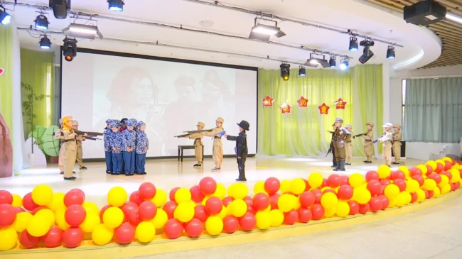 闭幕活动中,小朋友们还展示了《鸡毛信》《刘胡兰》《王二小》等精彩的绘本剧。海娃和英子在与反动势力的斗智斗勇中成功将鸡毛信送达,“小刘胡兰”面对威逼利诱誓死不屈、英勇就义等,一个个英雄形象活灵活现地展示在大家面前,逗得台下家长忍俊不禁又眼眶发热。