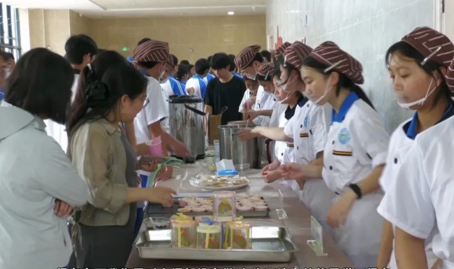 翁源县中等职业技术学校烹饪部学生 谢佳倪:我们烹饪部开展了餐包制作、核桃酥、蔓越莓饼干,中餐那边是有烤羊肉串,还有咖啡饮品跟柠檬茶,我们的面点是有面塑作品还有雕刻,果酱画这些都属于我们烹饪专业的一些特色,很多东西我们平时上课都没有做过,为了这个技能周学了很多,让我们的能力得到了提升。