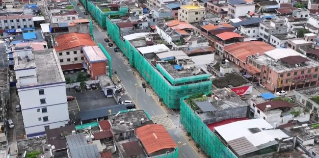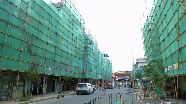 周陂镇党委副书记、镇长 马宾:我们现在典型镇目前主要开展的还是这个主街的风貌提升这一块的建设。主要包含外墙粉刷,破旧的招牌补充、更换,屋顶还要加盖顶,“三线”整治等这些方面。目前我们已经开工了,周心路(外架搭设面积)大概有18000平方米,预计在八九月份就可以全面完工。