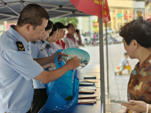 在宣传咨询台前,工作人员向群众发放宣传资料并讲解安全用药、用妆、用械知识,倾听群众在药品安全方面的诉求,回应群众关切的问题。