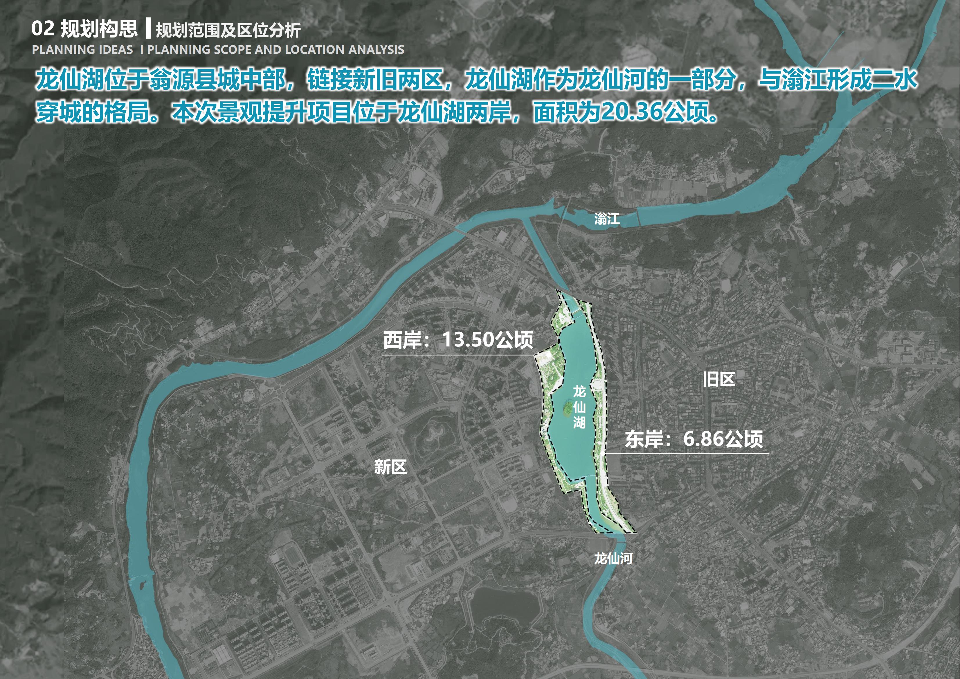 龙仙湖位于翁源县城中部,衔接新老城区,龙仙湖作为龙仙河的一部分,与滃江形成二水穿城的格局。本次景观提升项目位于龙仙湖两岸,规划面积为20.36公顷。