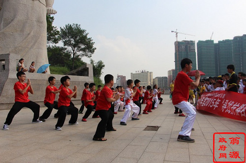 炎热的天气丝毫没有阻挡学生们的爱国情怀,他们在陈璘将军的雕塑面前,用武术、跆拳道、葫芦丝合奏等表演方式铭记历史,缅怀先烈。活动最后同学们还青少年宫内围绕陈璘将军英雄事迹展开了一系列知识问答活动。