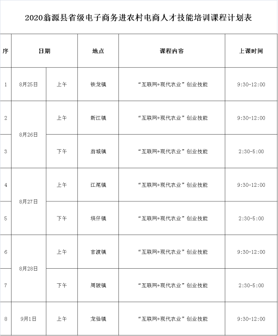 培训通知 ▏2020年翁源县电子商务进农村电商人才技能培训乡镇巡回授课即将开课