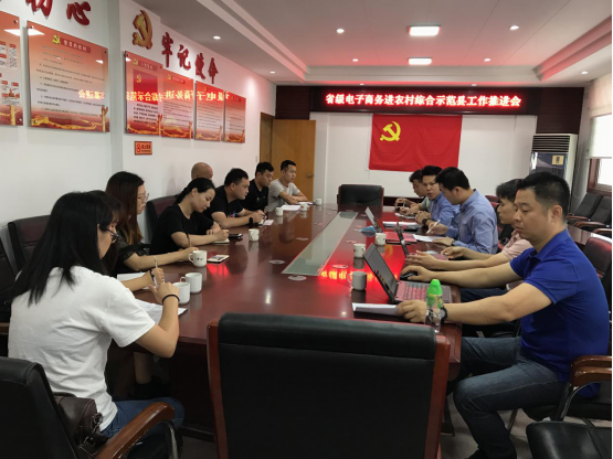 8月20日,我县在县工信局3楼会议室召开“2019年省级电子商务进农村综合示范县”工作推进会。省电商协会副会长李华强,县工信局主要领导及相关部门负责人,乐村淘电子商务有限公司、万艺信息科技有限公司、卓晟电子商务有限公司等项目承建单位负责人及业务骨干参加会议。