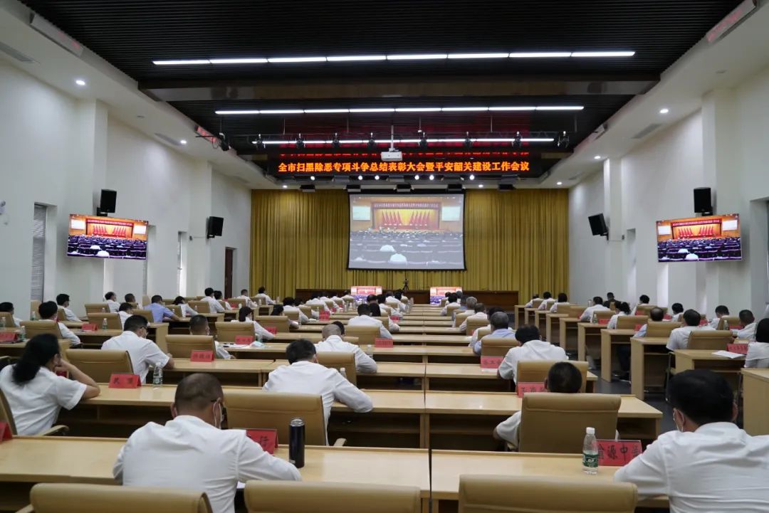 会议观看韶关市扫黑除恶专项斗争三年工作汇报片,宣读市委、市政府关于表彰韶关市扫黑除恶专项斗争先进集体和先进工作者的决定、关于通报表扬韶关市扫黑除恶专项斗争先进单位的决定,授予40个单位“韶关市扫黑除恶专项斗争先进集体”荣誉,授予80名同志“韶关市扫黑除恶专项斗争先进工作者”荣誉;对5个先进县(市、区)扫黑除恶专项斗争领导小组、65个扫黑除恶专项斗争乡科级以上先进单位进行通报表扬。