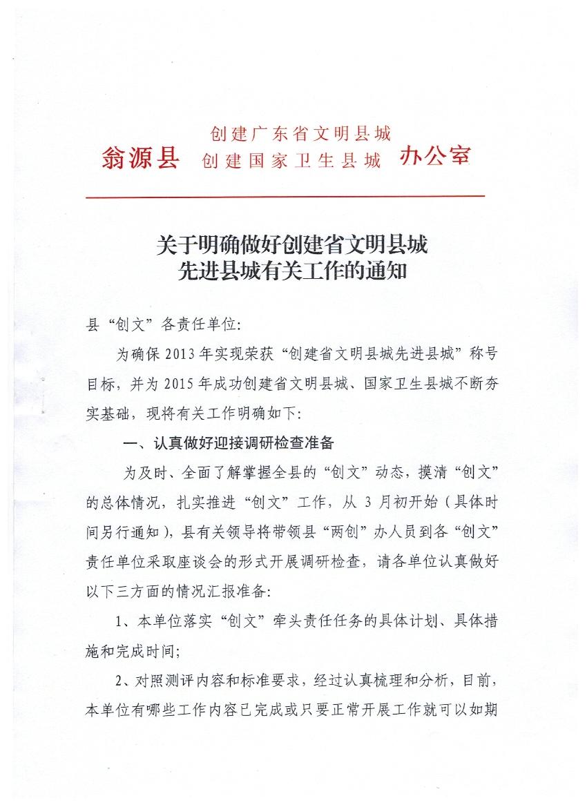 关于明确做好省文明县城先进县城有关工作的通知(20130301)