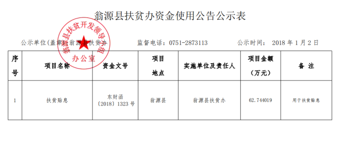 2018年12月扶贫资金使用公告公示表2