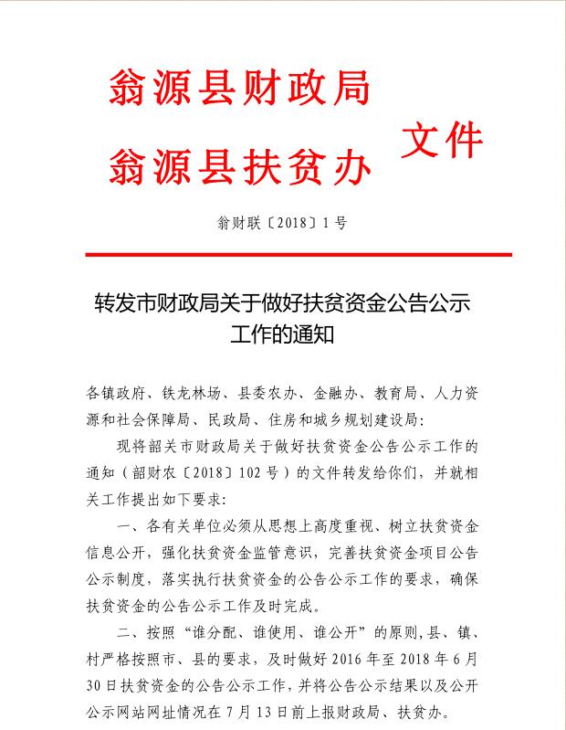 转发市财政局关于做好扶贫资金公告公示工作的通知
