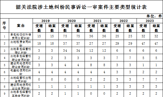 一、涉土地纠纷民事诉讼案件分类统计数据