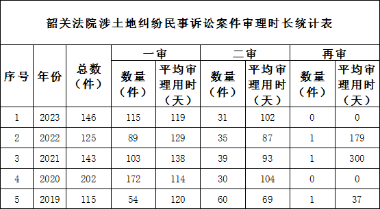 二、涉土地纠纷民事诉讼案件审理时长统计数据