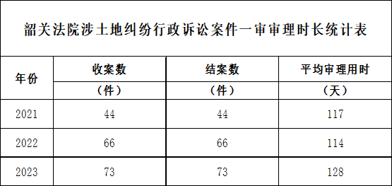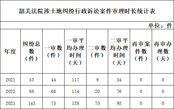 四、涉土地纠纷行政诉讼案件审理时长统计数据
