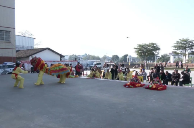 在文化宫后方舞台,黄塘村舞龙队、明星村舞蹈队、猫头狮队分别表演了舞龙、舞牛、舞狮等节目。