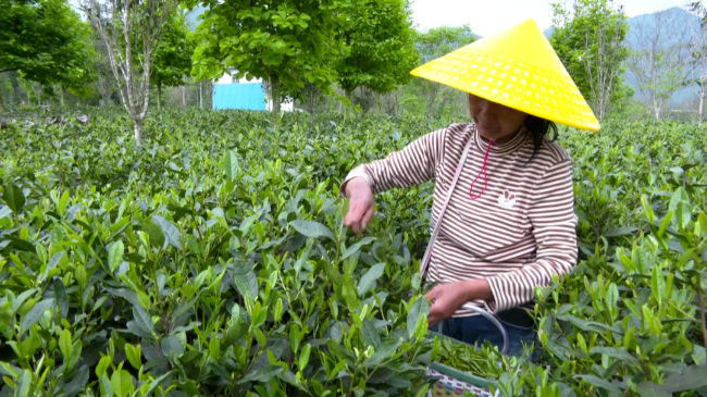 茶园从3月初开始采摘明前茶,每天有近百名工人在劳作,近几日第一轮采摘将近尾声,预计一周后开始第二轮春茶采摘。