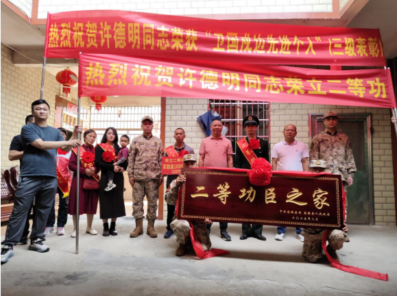近日,翁城镇人民政府与翁源县退役军人事务局联合行动为现役军人许德明同志荣立“二等功”及“卫国戍边先进个人”三级表彰送去了喜报和“二等功臣之家”的牌匾,以此彰显军属的荣光,同时也向全社会传递出对军人及其家庭的深切关怀与崇高敬意。