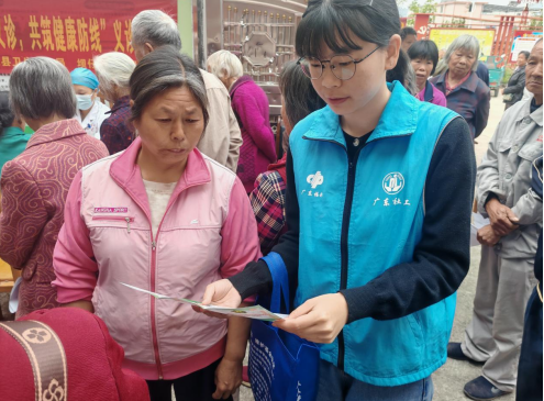 活动中,社工联合村干部、志愿者组织参与群众有序排队,并派发民政相关政策宣传资料,向村民讲解养老保险、城乡合作医疗、残疾人优惠和高龄津贴等相关政策。坝仔镇中心卫生院医护人员为来到现场参加活动的老年人进行免费健康检查,并针对每个人的情况提出健康建议。