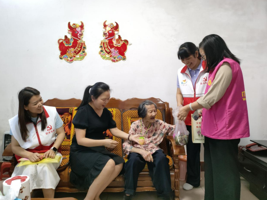 为了弘扬尊老爱老的优良传统,社区工作人员与志愿者带着精心准备的粽子、鸡蛋等慰问品,分组前往百岁老人和老党员家中进行走访慰问。每到一户,工作人员都与他们亲切交谈,详细询问他们的身体状况和生活情况,倾听他们讲述过去的故事。百岁老人脸上洋溢着幸福的笑容,老党员们则满怀感慨地回忆着往昔岁月,他们的经历和精神也深深感染着每一位前来慰问的人员。康乐社区通过这种方式,不仅为居民送去了节日的祝福与诚挚的关怀,更传承和弘扬了中华民族的传统美德以及党的优良作风。