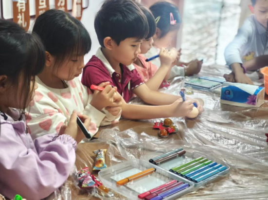 活动现场洋溢着欢乐的节日气氛。大人小孩一同从捋粽叶、做漏斗状、填糯米、压紧实,到封口、扎捆,一片片清香的粽叶、一粒粒晶莹的糯米,在一双双巧手下变成精巧的粽子,空气中到处弥漫着粽叶的清香和糯米的香甜。活动还设置了具有创意的“童画工坊”绘蛋活动,在工作人员的引导下,现场小朋友拿起画笔展开自己的想象和创造,在鸡蛋上勾勒出一幅幅充满童趣的作品,原本普通的蛋壳逐渐变得色彩缤纷,趣味横生。