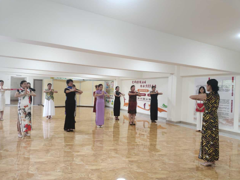 活动中,旗袍文化协会的会员化身指导老师,为大家带来旗袍舞教学。从基本的站姿、步态,到手势运用、转身技巧,老师都耐心细致地讲解每一个动作要领,手把手纠正学员的姿势。学员们热情高涨,认真学习每一个动作并积极与老师互动交流。在悠扬的音乐声中,大家身着旗袍,翩翩起舞,尽显旗袍舞独特的韵味与魅力。