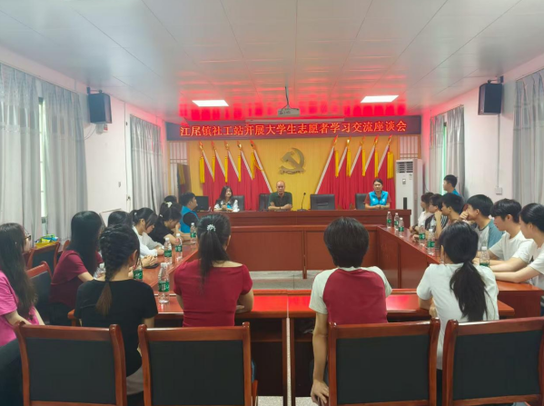 座谈会上,江尾镇相关领导对志愿者队伍的组建表示祝贺,希望主动加入志愿者队伍的同学们能够在奉献中积累成长,尽己所能,帮助他人,服务社会。