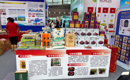 展会期间,工作队积极对接采购商与产地资源,通过现场品鉴、品牌宣讲等方式,重点推介了新江镇特色农产品:良源农业的无添加薯干与芭蕉芋粉丝、太坪粮仓的有机富硒生态米系列、凉桥村的古法压榨红花山茶油以及绿源农业的象牙香粘丝苗米等。这些产品以其生态种植理念和传统工艺特色,吸引了众多采购商驻足咨询。