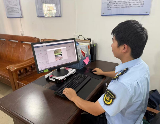 非现场执法检查依托“粤执法”平台线上发布检查任务后,相关养殖主体负责人可通过“粤商通”平台“非现场执法”模块接收云巡查任务,按要求上传所需资料即可全程线上完成行政检查流程,实现“数据多跑路、主体少跑腿、执法更高效”。附图1、执法人员在线上审核商家现场图片