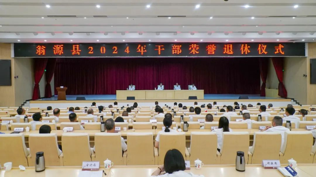 10月15日上午,翁源县2024年干部荣誉退休仪式在县会议中心举行。县委书记高忠出席仪式并讲话。县委副书记彭荣华主持仪式。县委常委、组织部部长魏卢捷,县委常委、县委办公室主任、县直机关工委书记朱启养出席仪式。